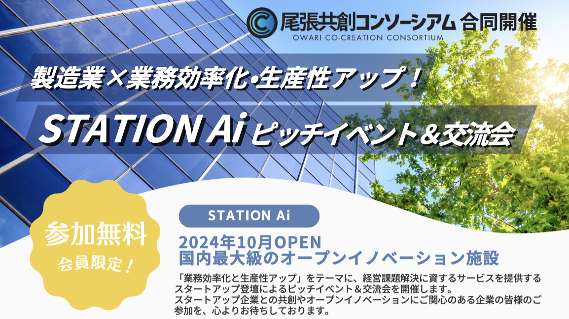 【11/26(水)開催】スカイディスクが尾張共創コンソーシアム合同開催「製造業×業務効率化・生産性アップ!STATION Aiピッチイベント&交流会」に登壇します