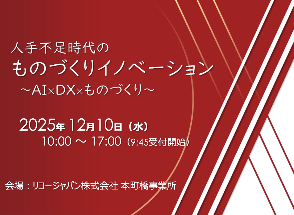 株式会社スカイディスク(本社:福岡県福岡市中央区、代表取締役CEO:内村 安里、以下「スカイディスク」)は、2025年12月10日(水)にリコージャパン株式会社 本町橋事業所(大阪市中央区本町橋1-5)で開催された「ものづくりイノベーション2025 〜AI×DX×ものづくり〜」に登壇いたしました。