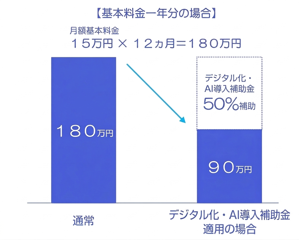 これにより、一定の条件を満たした企業様は、最適ワークスの基本料金等費用の一部について補助金の交付対象となります。